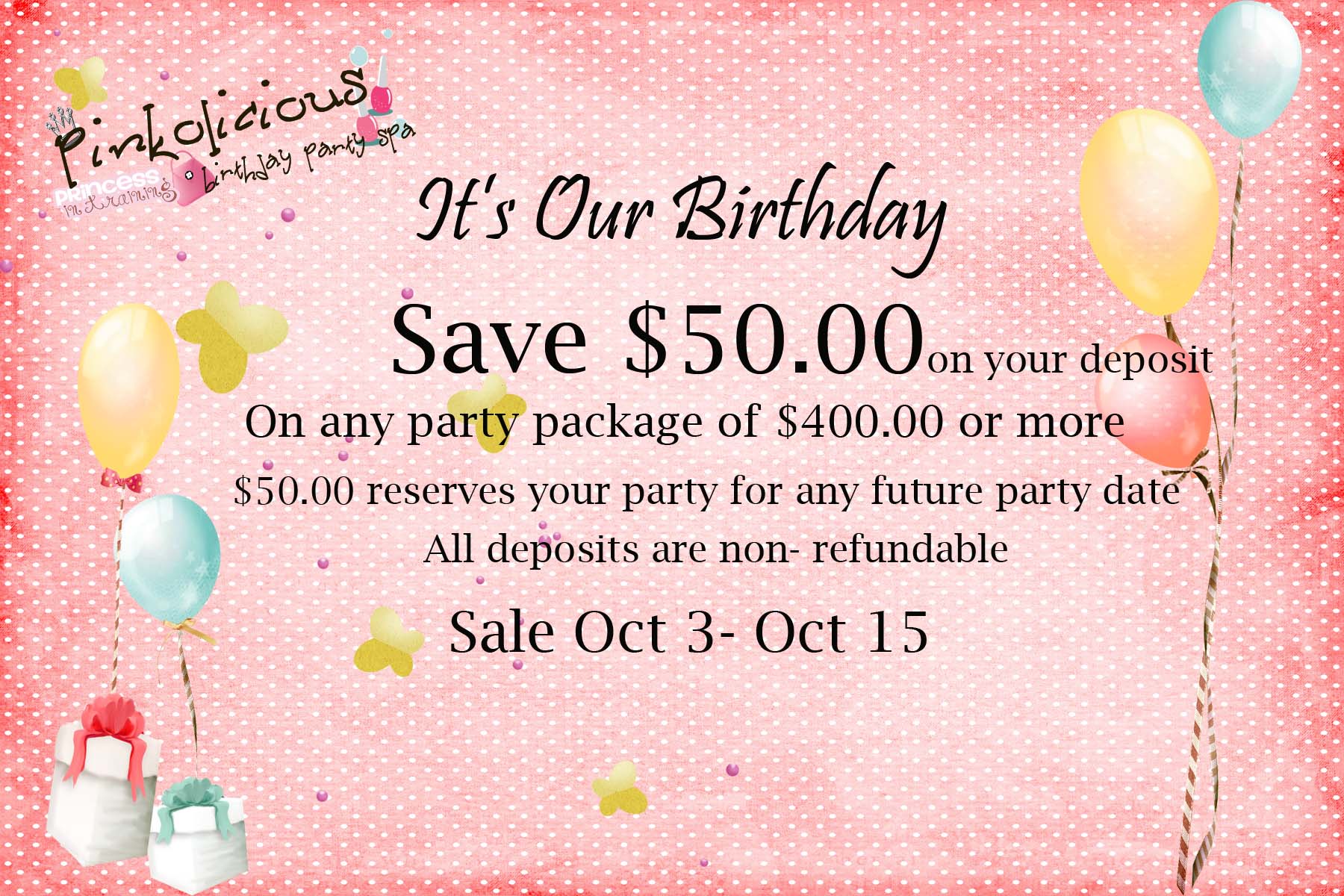 It’s our Birthday Celebrate with us and Save Posted on October 3, 2012 by natreand 0 Share this: Click to share on X (Opens in new window) X Click to share on Facebook (Opens in new window) Facebook Like Loading... Related