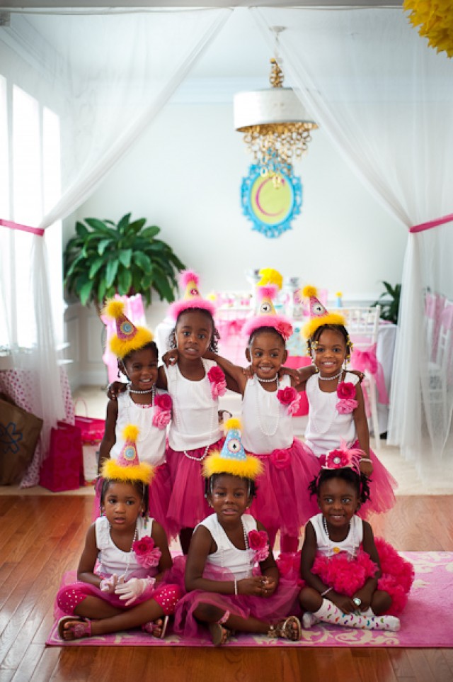 Your princess will start with being crowned Little Miss Pinkolicious, the girls will then start making their own tutu’s with the help of our hostesses to wear for their fashion show. As they finish the girls will then be escorted to their designated stations: when they reach the facial station they will complete the normal facial activity and to top it off they will get a little extra, each girl will get a pearl necklace, clip on fashionable earrings, a fabulous jeweled ring and a pearl bracelet to accent their awesome facial makeovers which included; a light application of eye shadow, lip gloss, a glitter tattoo, and a spritz of pinkolicious perfume.